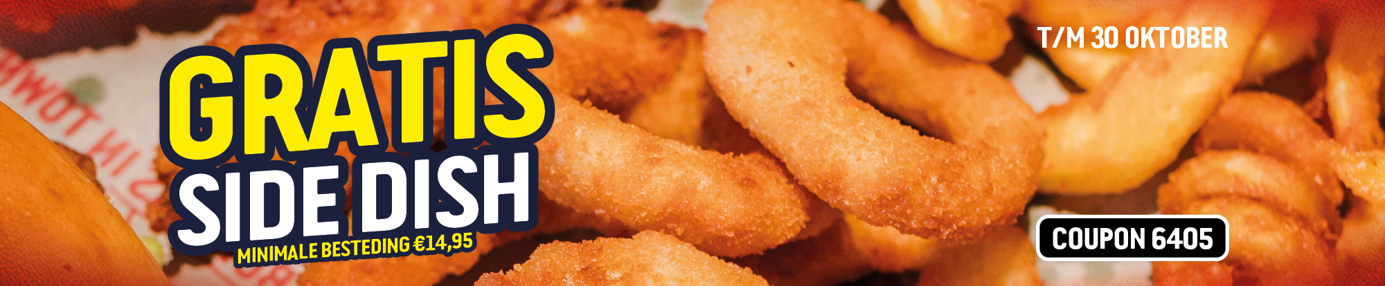 Burger met Samurai-saus, rode ui, sla, Crispy Chicken, Cheddar en (kalkoen) Bacon, een drankje en een bijgerecht naar keuze