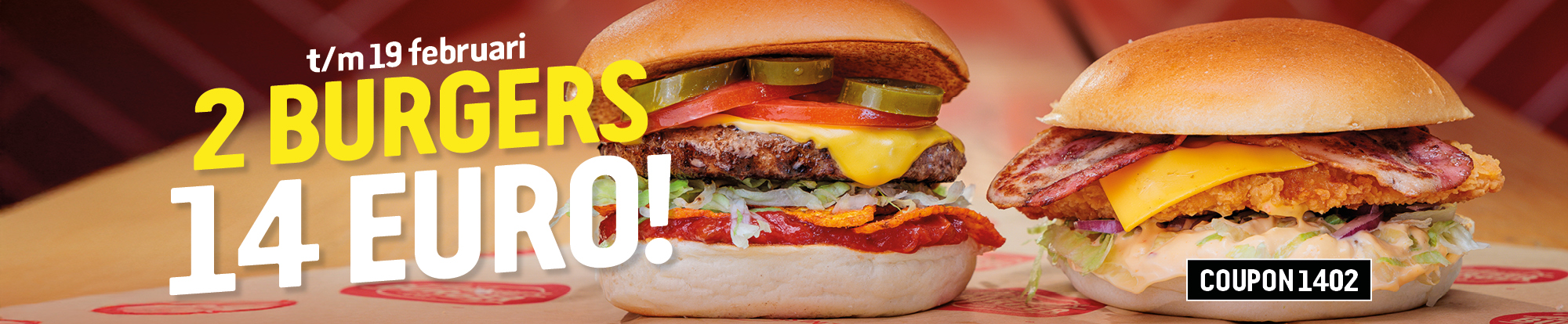 Burger met twee gesmashte rundvleespatties, cheddar, augurk en 16/20 saus.